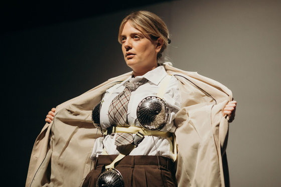 Running through the 75-minute show without interval is a series of satirical ads for domestic appliances that can be used by women in self-defence. Each of these fictitious devices is ridiculous in and of itself, but unfortunately personal safety in Melbourne of late has often been compromised … and it is no laughing matter. Just think about the murders of Jill Meagher and Aya Maasarwe, to name but two incidents that readily spring to mind. And that is not to overlook the litany of violent situations involving partners. Written by Maja Amanita and titled Robot Coupe, one ad in particular that stood out for me involved weaponised deadly mushrooms, such as Death Caps.