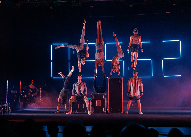 In short, it is good natured, exciting, exhilarating, surprising and, at times, humorous. And it is suitable for youngsters (the age recommendation is 4+), as well as adults. Nine supremely gifted artistes and a drummer have put together a brilliant showcase of skill, strength and agility. Think circus, dance and physical theatre.