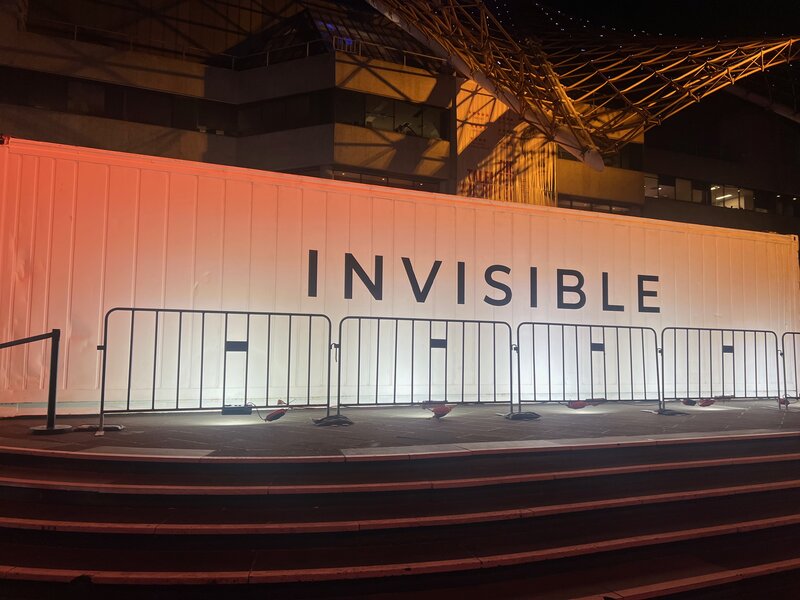 Inspired by the 1933 film The Invisible Man starring Claude Rains and Gloria Stuart, and its 2020 reimagining, INVISIBLE is a sensory experience, not for the claustrophobic. That is made clear during a brief introduction, after which we are ushered into a refrigerated shipping container (that, fortunately, is not refrigerated), containing two rows of theatre seats.