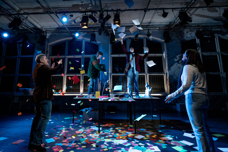A few cluttered desks with props is all it took to transport us to the heart of one of the world’s most boisterous cities. Richard Roberts’ set design hits the mark. Gavan Swift sets the mood with his lighting design and the sound design by Jack Scandrett and Mitchell Dand is generally strong. Musical director Vicky Jacobs has a critical role to play. She elevates the offering with precision and poise, although the amplification on the piano should have been turned down.