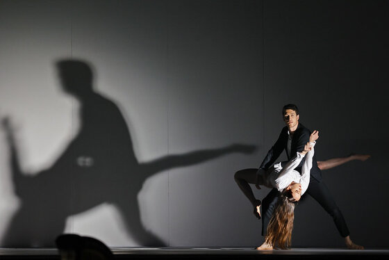 The physicality throughout this production is breathtaking as bodies climb atop bodies before dropping. But that is not all. They are thrown and, in one instance, dizzily twirled, perilously close to the ground, drawing sharp intakes of breath from the audience. Making his Opera Australia debut as the mournful Orfeo (the Italian name for Orpheus) is electrifying British countertenor Iestyn Davies, in a flawless display. Opposite him, displaying magnificent clarity and control is Australian soprano Samantha Clarke as both Eurydice and Amore (Love).