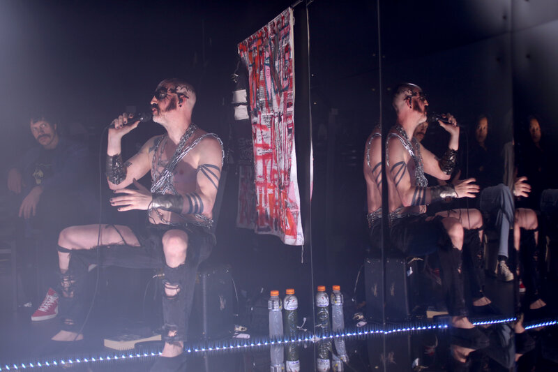During that time, a wild man (played by Tobias Manderson-Galvin) berated us with verbiage all but impossible to hear. When I say berated, his voice was shouty and overlaid with such loud music that it was simply incoherent most of the time. I say that regardless of whether he was speaking with or without a microphone (he did both). On occasions, he injected humour, breaking the fourth wall.
