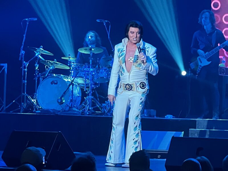 What struck me when I entered The Chapel theatre at Chapel Off Chapel was the large and impactful set. Harry Gill has excelled with his set design, a well laid out, sprawling lounge, with bar area, rich red carpeting, saloon swinging doors and silver metallic fringe curtaining. The piece de resistance is an Andy Warhol print of Judy Garland. Gill and Jessamine Moffett have added appeal with their eclectic costuming choices.